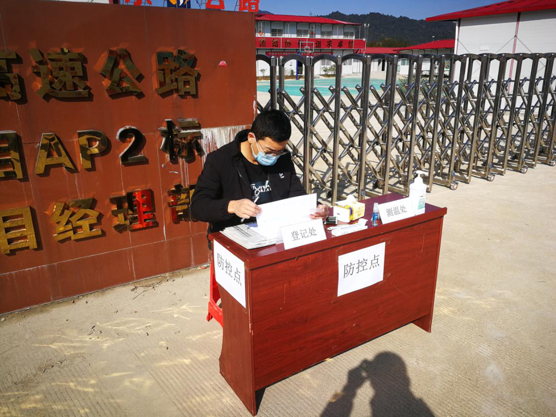 在項(xiàng)目部門口設(shè)置疫情防控點(diǎn),項(xiàng)目部職工輪流值班登記、測(cè)量體溫,嚴(yán)格控制人員進(jìn)出