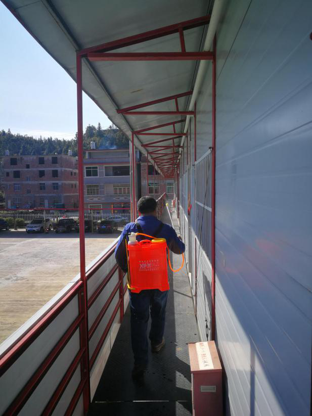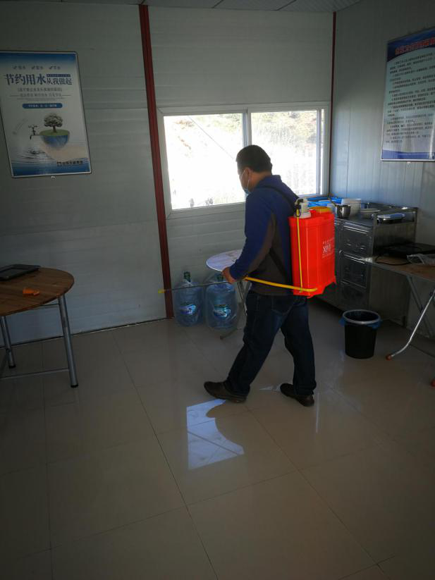 值班人員每天上午下午各對(duì)項(xiàng)目部進(jìn)行1次全方位消毒