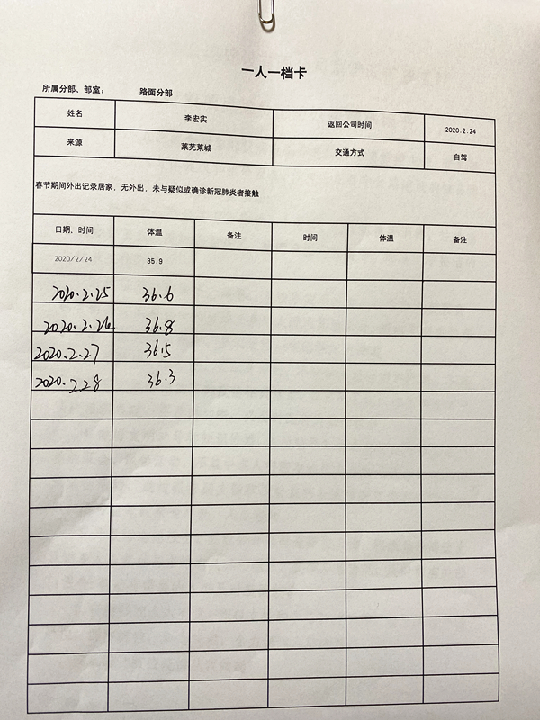 實行進場人員“一人一檔”制度,體溫動態(tài)管理