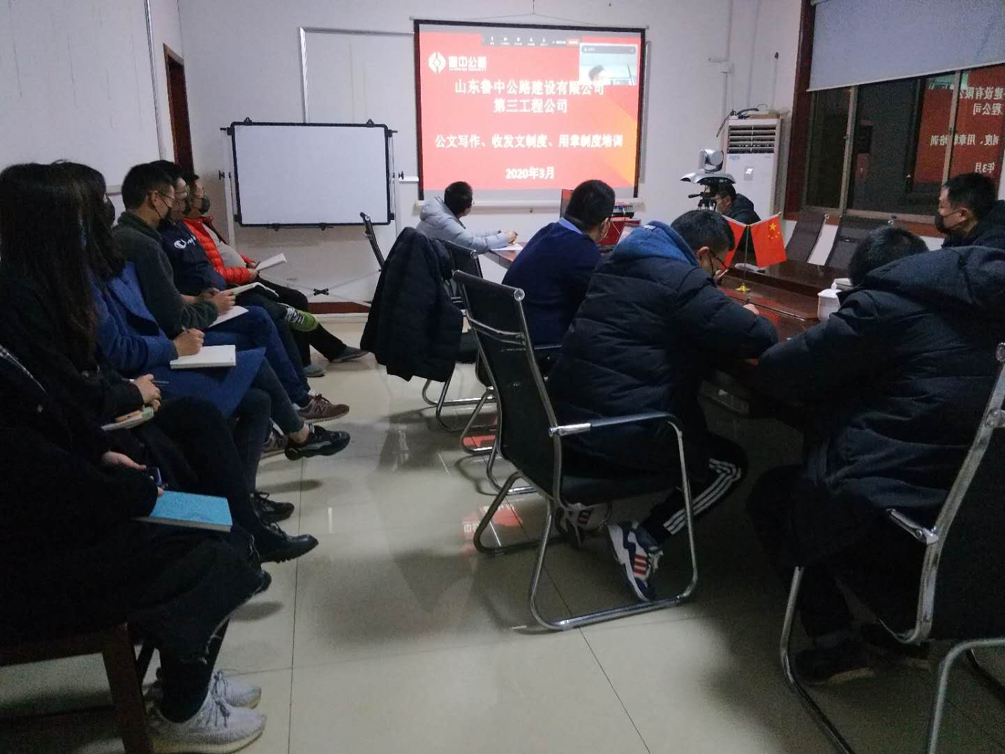 2020年3月8日19時(shí),第三工程公司辦公室、總工辦利用公司視頻會(huì)議系統(tǒng)在公司基地對公司所屬市政項(xiàng)目和淄川項(xiàng)目人員進(jìn)行公文寫作、簽證計(jì)量、影像資料收集等項(xiàng)業(yè)務(wù)培訓(xùn)。培訓(xùn)分別就公文的格式、行文規(guī)則、簽發(fā)、辦理、收發(fā)文管理,撰文規(guī)律技巧、注意事項(xiàng)、容易出現(xiàn)的邏輯錯(cuò)誤,典型病句,向參加學(xué)習(xí)的人員進(jìn)行事例講解。強(qiáng)調(diào)公文寫作和小說、詩歌、劇本、散文等文學(xué)藝術(shù)作品的形象思維不同,公文屬于邏輯思維范疇,必須按照實(shí)用、嚴(yán)密、準(zhǔn)確、簡練的文本要求,行文內(nèi)容力求言簡意賅,簡明扼要,表述準(zhǔn)確。