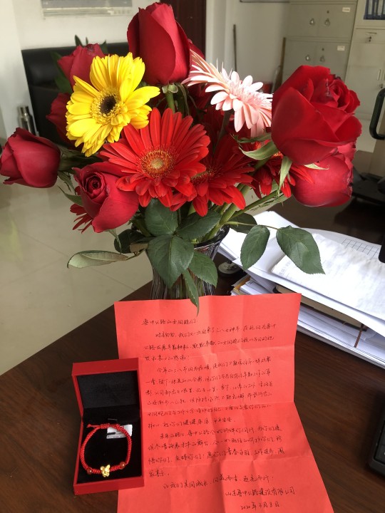 今年由于新冠肺炎疫情的原因,使我們無法和往年一樣齊聚公司歡度節(jié)日,隔離疫情不隔離愛,身在工地的我們收到了來自公司的禮物,和分公司準備的鮮花,公司的用心準備,暖暖的慰問話語,寄托了公司對我們每一位女員工的祝福,雖不能相聚但我們的心一直和公司相連。