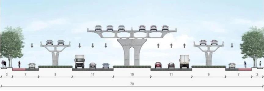 根據(jù)文件表述,魯泰大道快速化改造工程西起南京路,東至柳泉路,自西向東分別與南京路、世紀(jì)路、西六路、西五路、西四路、泰美路、柳泉路相交。長(zhǎng)4150米,紅線寬度60米,綠線寬度20米,新建高架橋,改造道路、排水、照明、交通設(shè)施、綠化等。