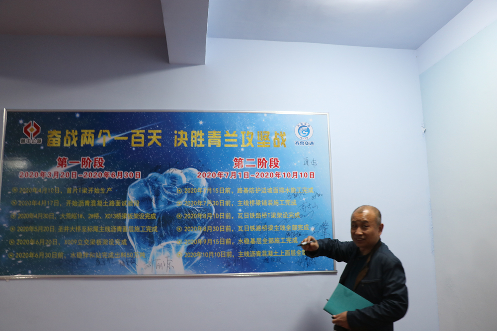 在“奮戰(zhàn)兩個一百天,決勝青蘭攻堅(jiān)戰(zhàn)“的決心書上簽下自己的名字。