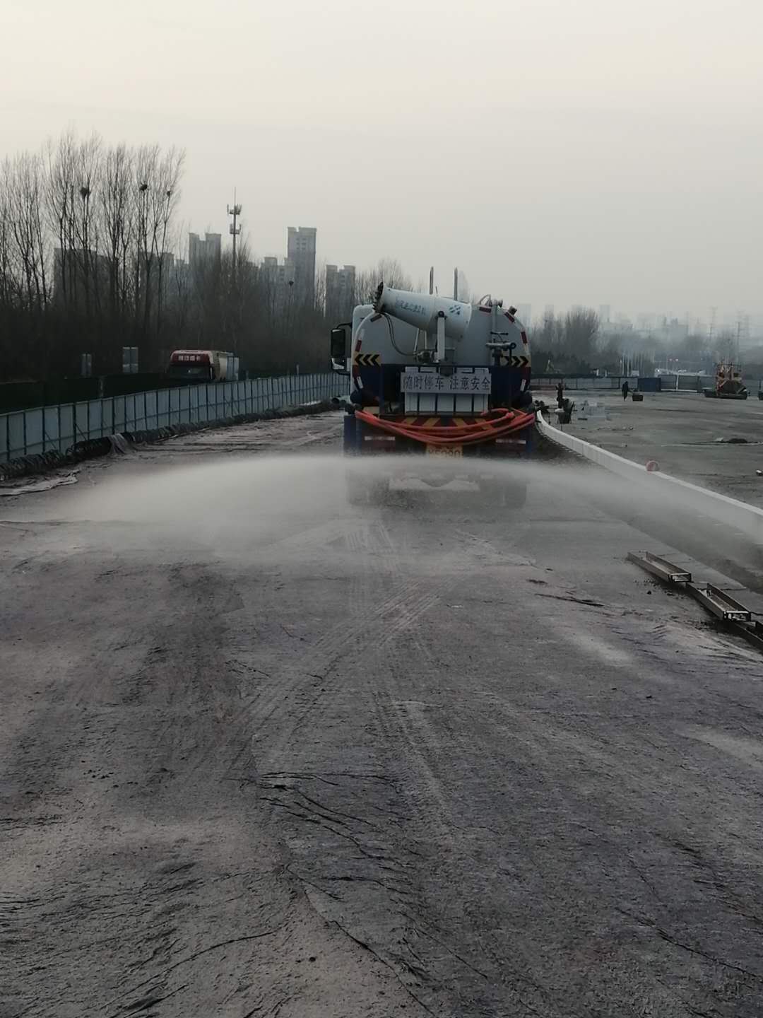 施工中要求運(yùn)輸車全部覆蓋,做好安全文明施工。