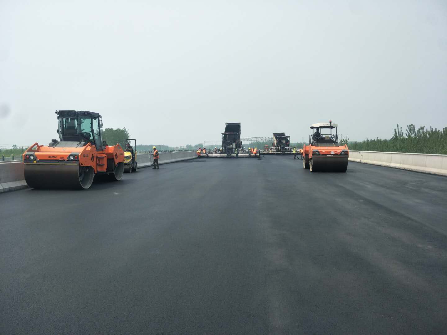 2020年4月20日由山東魯中公路建設(shè)有限公司承建的京滬高速萊蕪至臨沂(魯蘇界)段改擴(kuò)建工程篙旺溝大橋橋面鋪裝(瀝青砂)順利完成鋪筑,篙旺溝大橋中心樁號(hào)K709+040.128,橋長240米,經(jīng)過試驗(yàn)檢測,各項(xiàng)指標(biāo)均符合設(shè)計(jì)及規(guī)范要求。此次橋面鋪裝(瀝青砂)的順利鋪筑,為后續(xù)橋面鋪裝(瀝青砂)施工積累了寶貴經(jīng)驗(yàn)。