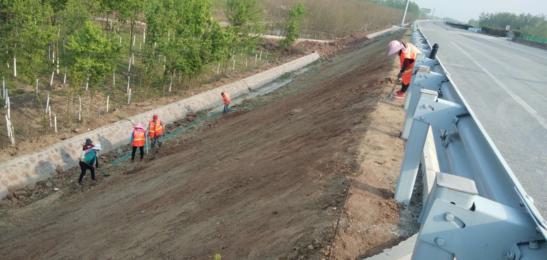 每天太陽剛升起的時候,沭河大橋鋪裝、篙旺溝大橋護欄、歸昌特大橋鋪裝、護欄、邊坡植草綠化、瀝青面層攤鋪和邊溝砌筑現(xiàn)場熱火朝天進行著自己的工作,通過項目施工大干100天的鼓舞,所有的參建員工斗志昂揚,同目標(biāo)共奮斗,以一家人、一條心、一股繩的信念,大家卯足勁,為順利完成階段施工任務(wù)努力著、奮斗著。