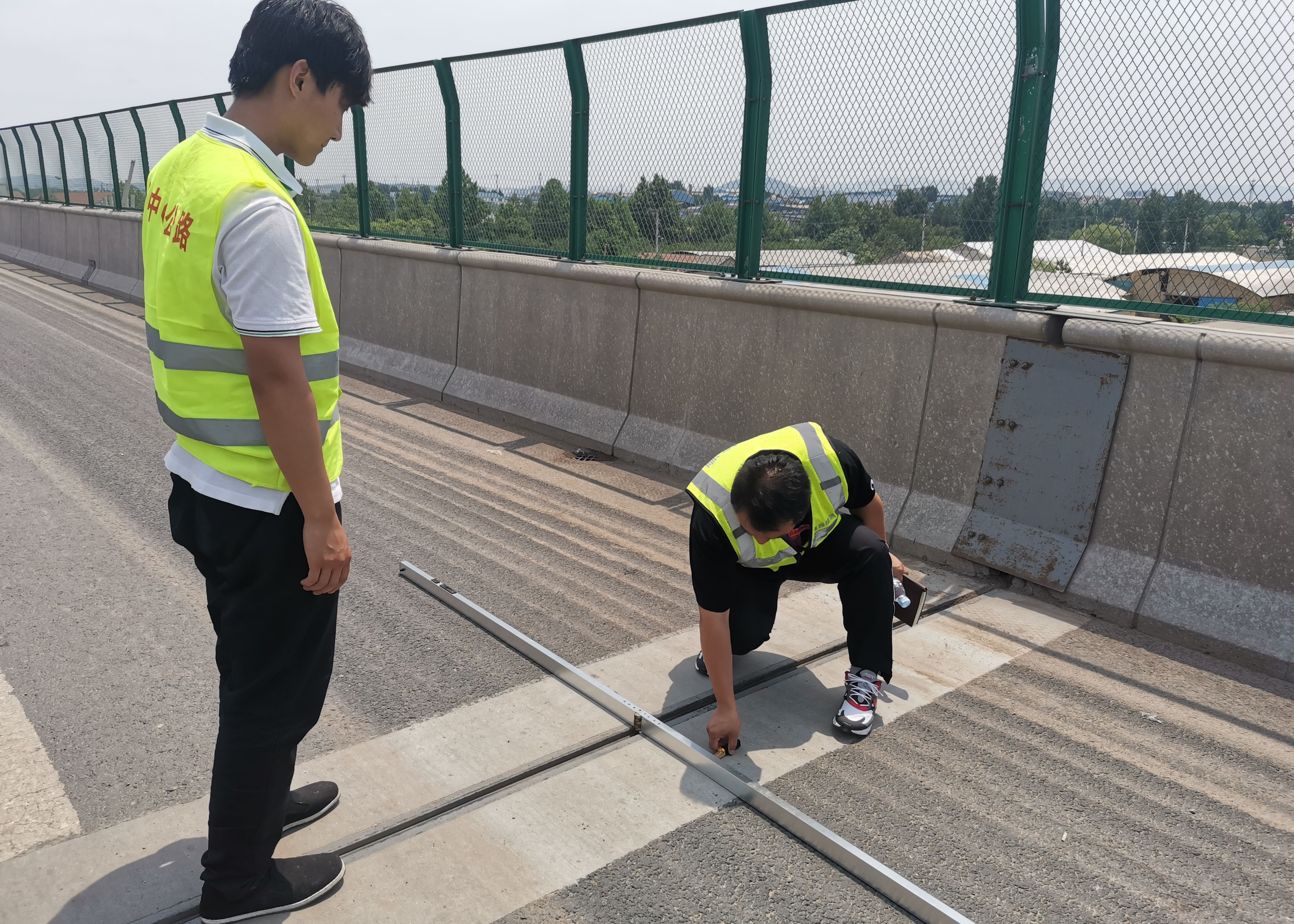 專(zhuān)家組人員分為兩組在上午十一點(diǎn)到達(dá)我第二標(biāo)段進(jìn)行質(zhì)量檢驗(yàn)。路面專(zhuān)家組人員對(duì)K93+200-K94+200段進(jìn)行了外觀質(zhì)量、路面彎沉、路面車(chē)轍、路面平整度、路面抗滑等項(xiàng)目的檢測(cè)。橋梁專(zhuān)家組對(duì)南羅鐵路分離立交、張博路分離立交的外觀質(zhì)量、橋梁伸縮縫與橋面鋪裝高差、橋面鋪裝平整度、橡膠支座受力情況進(jìn)行的檢測(cè)。