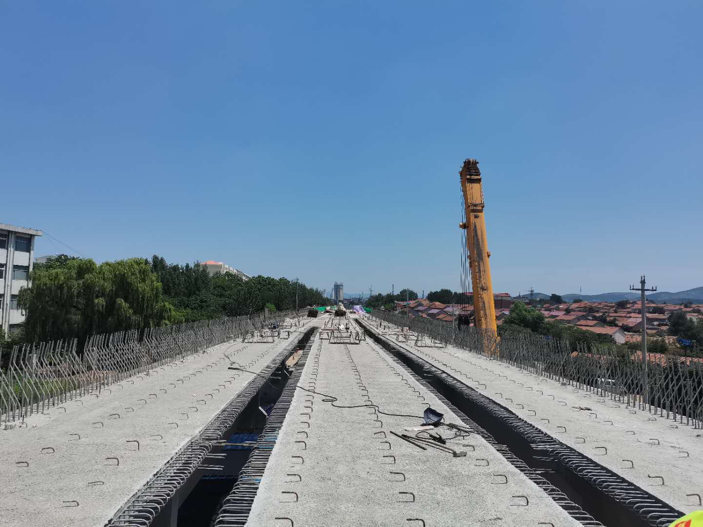 G341膠海線南崔路立交橋2019年10月開(kāi)工,2020年3月底開(kāi)始進(jìn)行30m箱梁預(yù)制。由于受場(chǎng)地、工期等影響箱梁吊裝分3次進(jìn)行,我部在吊裝前進(jìn)行了吊裝及交通組織方案編制并進(jìn)行了專家論證。在5月21日、6月17日我部分別完成了第一、二跨和三、四跨的吊裝,7月20日中午12點(diǎn)隨著最后一片箱梁安全就位標(biāo)志著G341膠海線南崔路立交橋第一至七跨箱梁全部吊裝完成。箱梁的吊裝完成是本工程的關(guān)鍵施工節(jié)點(diǎn),同時(shí)我部也做好了高空安全防護(hù)等措施。