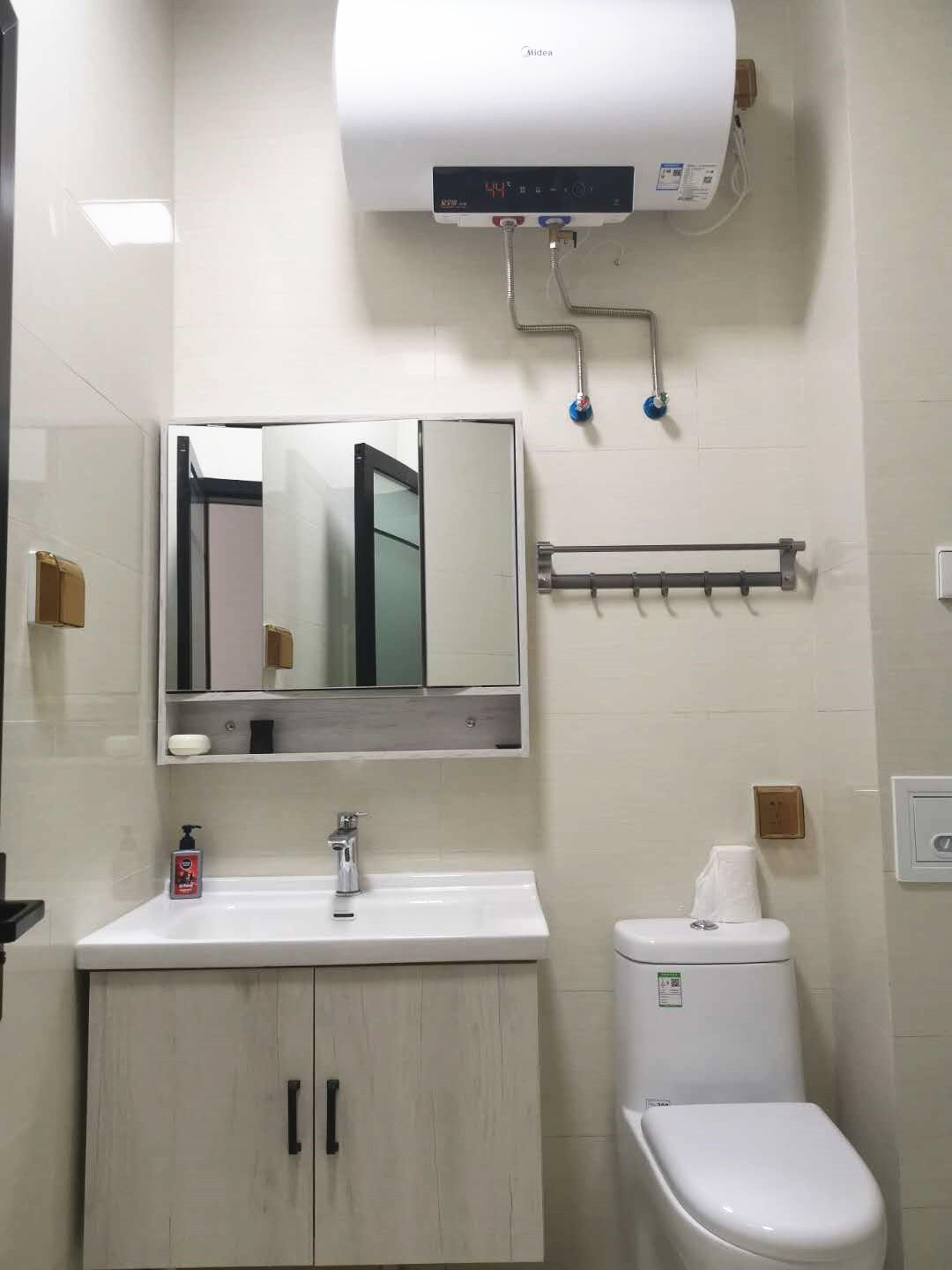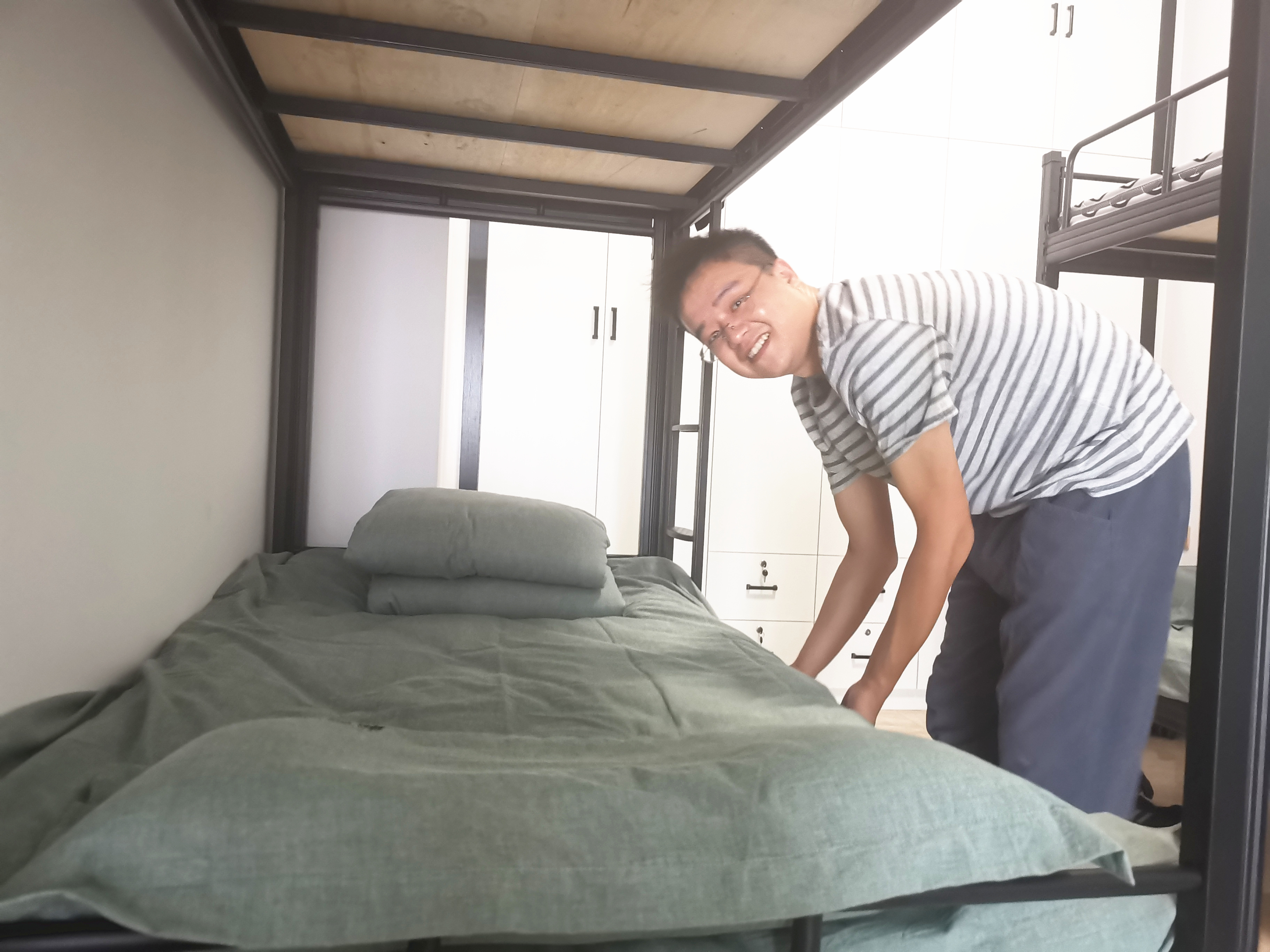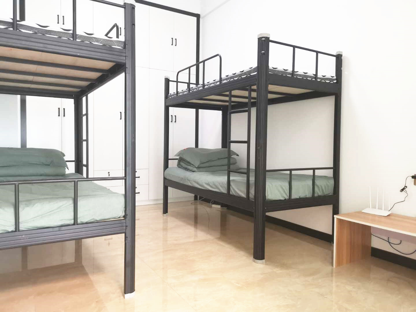 房間內被褥、床單等生活用品,樣樣都有;衣柜、鞋柜、儲物柜,柜柜齊全;獨立衛(wèi)浴,無線寬帶,觀景陽臺,一應俱全,真正實現了“酒店式公寓,員工拎包入住”。