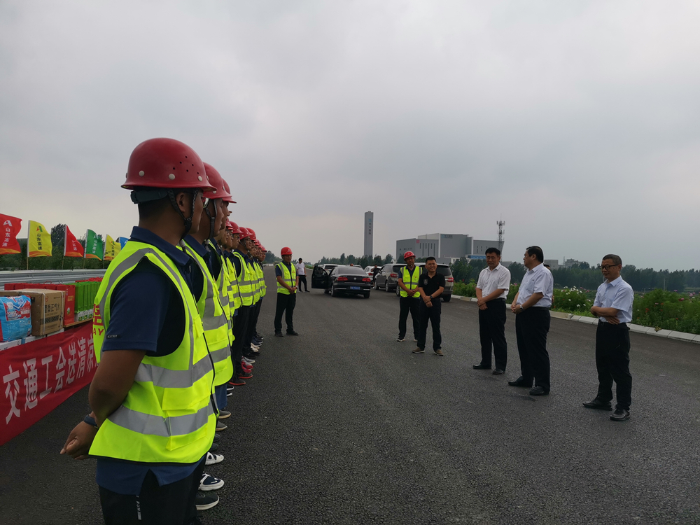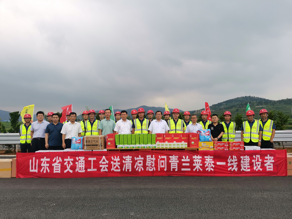 2020年8月13日,省交通廳工會副主席王迎軍,山東高速集團(tuán)公司工會常務(wù)副主席孫法合一行到青蘭項目部進(jìn)行調(diào)研并慰問現(xiàn)場一線員工。青蘭項目部負(fù)責(zé)人陪同調(diào)研和慰問活動。