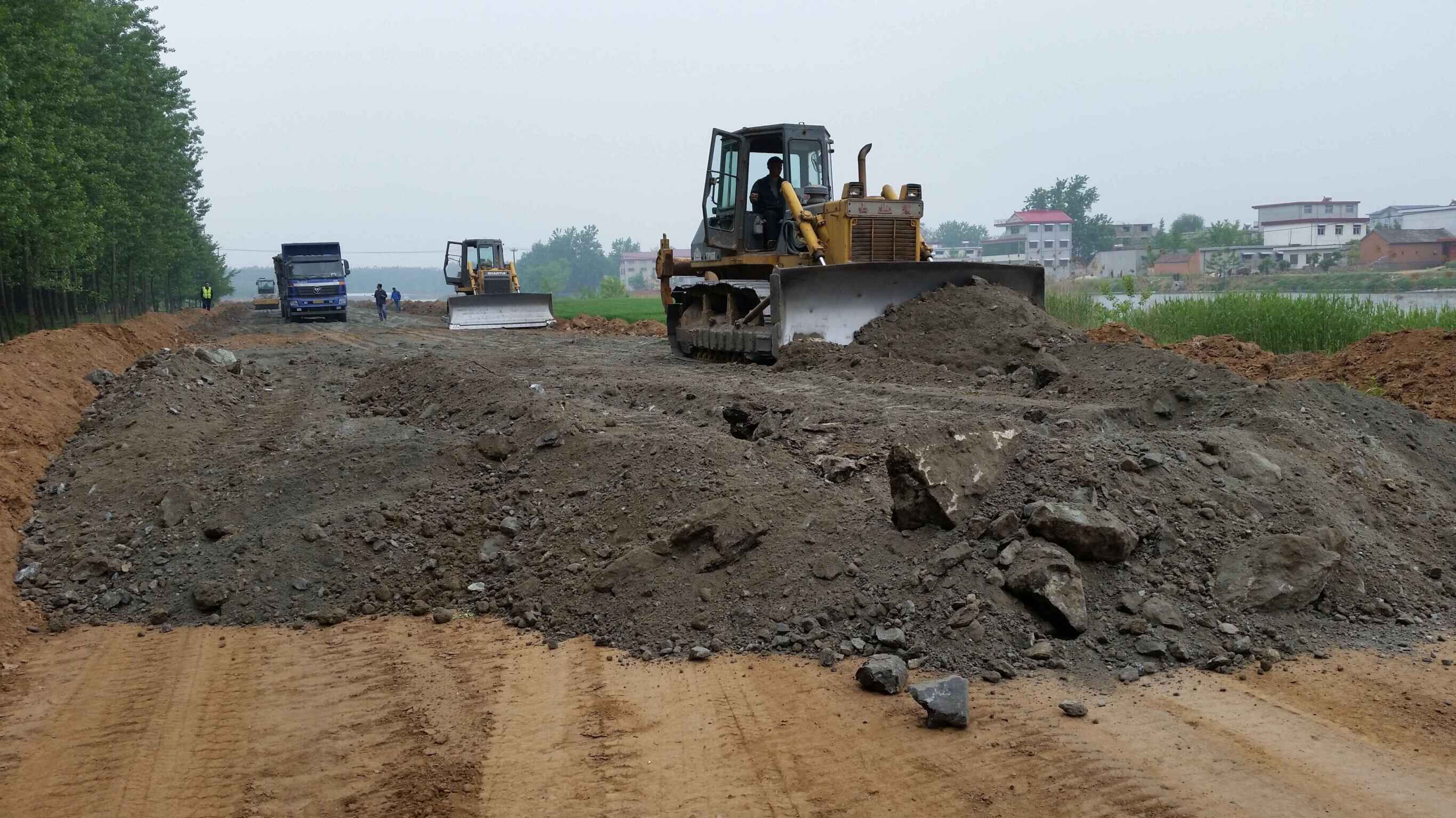 郯城縣白馬河左右堤(小馬頭橋~捷莊閘)路面建設(shè)工程,全長(zhǎng)34km。自2016年4月12日開工以來,在郯城縣政府、郯城縣交通局、監(jiān)理單位以及公司領(lǐng)導(dǎo)的大力支持下,工程順利開展,各項(xiàng)工作有條不紊的進(jìn)行。截止2015年7月25日,工程任務(wù)中路基挖除、換填、水泥穩(wěn)定碎石基層、瀝青砼下面層工作已全部完成。另外,瀝青砼上面層和路緣石也已完成絕大部分。