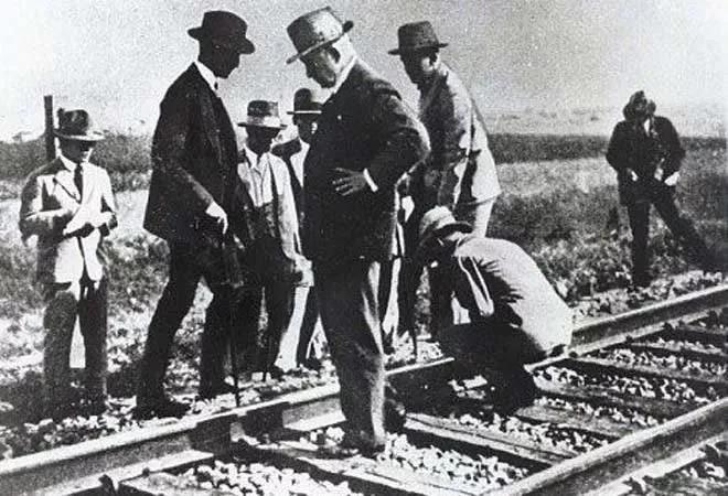 1931年9月18日夜,日本關(guān)東軍鐵路守備隊(duì)柳條湖分遣隊(duì)隊(duì)長(zhǎng)河本末守中尉為首一個(gè)小分隊(duì)以巡視鐵路為名,在奉天(現(xiàn)沈陽(yáng))北面約7.5公里處,離東北軍駐地北大營(yíng)800米處的柳條湖南滿鐵路段上引爆小型炸藥,炸毀了小段鐵路,并將3具身穿東北軍士兵服裝的中國(guó)人尸體放在現(xiàn)場(chǎng),作為東北軍破壞鐵路的證據(jù),誣稱中國(guó)軍隊(duì)破壞鐵路并襲擊日守各隊(duì)。