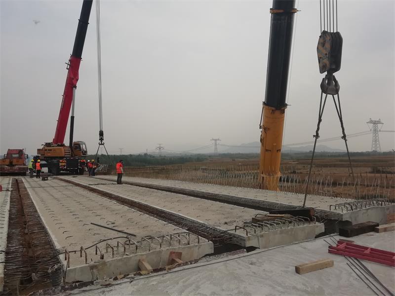 新寧高速項(xiàng)目橋梁數(shù)量多,上部結(jié)構(gòu)基本為梁板吊裝,項(xiàng)目部在橋梁吊裝上做了精心的部署:一、根據(jù)現(xiàn)場實(shí)地考察,規(guī)劃及選擇合理的全線運(yùn)梁道路;二、針對橋梁編制梁板吊裝專項(xiàng)方案,組織現(xiàn)場技術(shù)人員及吊裝隊(duì)伍進(jìn)行技術(shù)、安全交底;三、嚴(yán)格控制吊裝設(shè)備進(jìn)場、現(xiàn)場吊裝順序、梁板運(yùn)輸?shù)仁┕きh(huán)節(jié);四、現(xiàn)場安排專人指揮,安全人員全程跟蹤,確保吊裝安全順利。