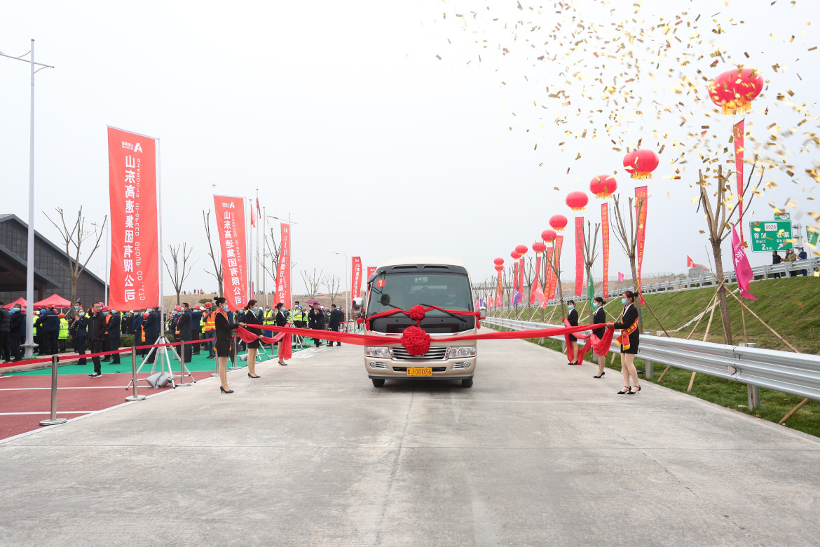 山東省副省長凌文出席通車活動并宣布兩個項目建成通車,山東高速集團黨委書記、董事長鄒慶忠介紹項目情況。泰安市委書記崔洪剛,泰安市委副書記、市長張濤,省政府辦公廳副主任王健,山東高速集團黨委副書記、董事、總經理周勇,省發(fā)展改革委副主任關兆泉,省自然資源廳二級巡視員鄭福華,省生態(tài)環(huán)境廳一級巡視員葛為硯,省國資委二級巡視員王緒超,泰安市委常委、秘書長李燦玉,濟寧市副市長張國洲,泰安市副市長趙德健,中建八局副總經理儲小彬出席活動?;顒佑墒〗煌ㄟ\輸廳副廳長王其峰主持。