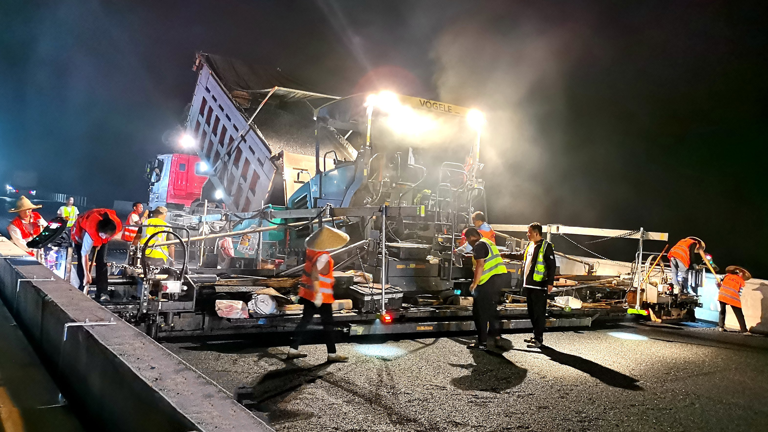 2020年,對(duì)于第四工程公司是不平凡的一年,受疫情影響和路基標(biāo)限制工期一再壓縮,受當(dāng)?shù)丨h(huán)保政策影響全部石料廠關(guān)停,原材料問(wèn)題也一直非常嚴(yán)峻,但年底通車的目標(biāo)始終不能動(dòng)搖。在公司的大力支持和分公司各位領(lǐng)導(dǎo)的帶領(lǐng)下,項(xiàng)目部從7月份就掀起大干熱潮,從9月份開(kāi)始,施工現(xiàn)場(chǎng)更是每天3、4點(diǎn)就出料,晚上干到凌晨。在10月20號(hào),項(xiàng)目部召開(kāi)最后的攻堅(jiān)動(dòng)員“決戰(zhàn)20天”,項(xiàng)目部員工和民工兄弟團(tuán)結(jié)一心,不畏艱辛,晝夜鏖戰(zhàn),按期完成了主線施工任務(wù),為江西年底通車的任務(wù)目標(biāo)奠定了堅(jiān)實(shí)的基礎(chǔ)。