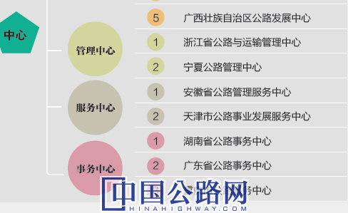 在15家中心的名稱中,有2個高頻詞,一是“發(fā)展”,共有8家,二是“事業(yè)”,也有8家,看來把公路、交通當(dāng)成事業(yè)來發(fā)展,已經(jīng)成為國家和行業(yè)的共識。