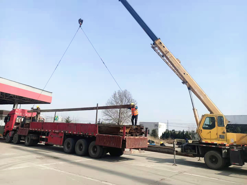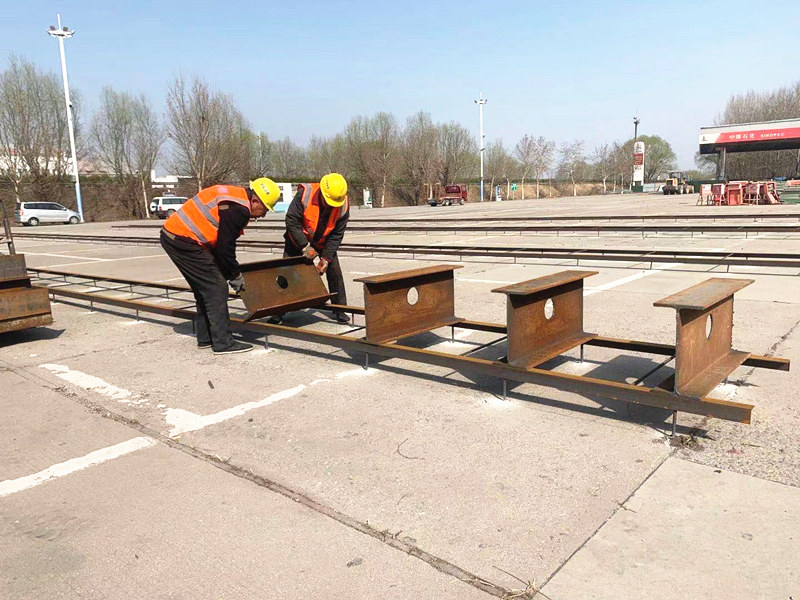 預(yù)制場工字鋼和龍門道軌進場卸車安裝