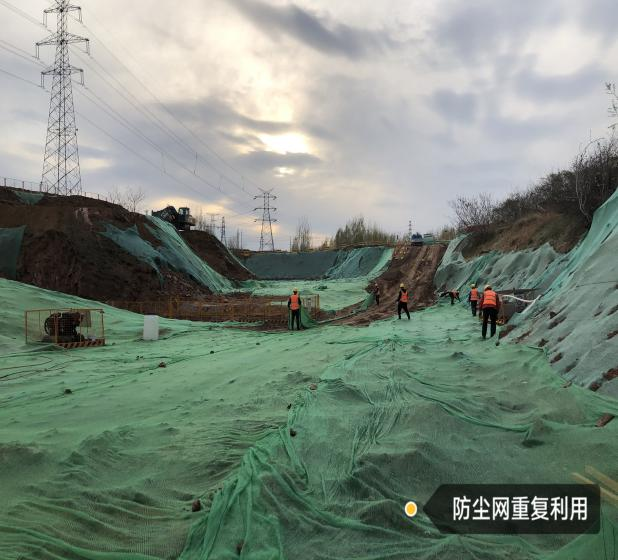 工程進(jìn)展初期,各個(gè)工作面裸土覆蓋成為落實(shí)環(huán)保工作的一項(xiàng)重要措施。“用量大”、“易損壞”成了防塵網(wǎng)的兩大特點(diǎn),針對(duì)此特點(diǎn),落實(shí)節(jié)能增效的理念,防塵網(wǎng)必須做好循環(huán)利用、將損壞程度降低到最小化。機(jī)械在進(jìn)入已經(jīng)覆蓋防塵網(wǎng)的工作面工作時(shí),提前將防塵網(wǎng)卷起集中放到一側(cè);工作面上不再使用的閑置防塵網(wǎng)集中收集、集中存放,以備其他工作面使用,做到循環(huán)利用;嚴(yán)令禁止各種機(jī)械、車(chē)輛碾壓蓋有防塵網(wǎng)的工作面,降低防塵網(wǎng)的損壞,從而降低成本。