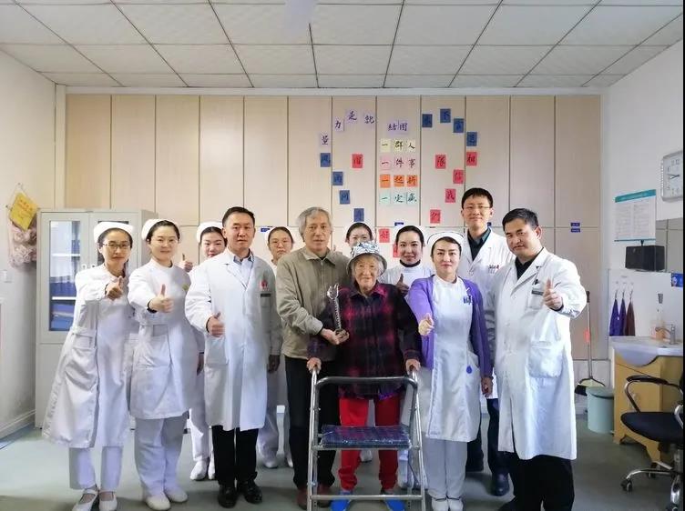 回到病房,奶奶吸上氧,帶上監(jiān)測設(shè)備,我的奶奶一切指標(biāo)都正常,鄰床的阿姨手術(shù)后都狀況頻出,可我的奶奶卻安祥如初,奶奶還聲音洪亮的和護(hù)士說:“謝謝你們,我沒事,你們快去休息吧。”術(shù)后第二天,引流管拔除后,奶奶就在醫(yī)生和護(hù)士的陪同下嘗試下床站立行走了。從此,奶奶每天堅(jiān)持下床行走,還央求著醫(yī)生護(hù)士,讓她盡量多走一段路。奶奶用她的實(shí)際行動(dòng)感染了身邊的醫(yī)護(hù)人員,其他科室的醫(yī)生也都來探望這位堅(jiān)強(qiáng)的老人,他們還自發(fā)給奶奶做了個(gè)獎(jiǎng)杯,祝我奶奶健康長壽?!遏斨谐繄?bào)》得知消息,也在第一時(shí)間采訪了我奶奶,就這樣,一傳十,十傳百,原本傳統(tǒng)中本命年渡劫的奶奶卻成了淄博市醫(yī)療系統(tǒng)當(dāng)紅的明星。