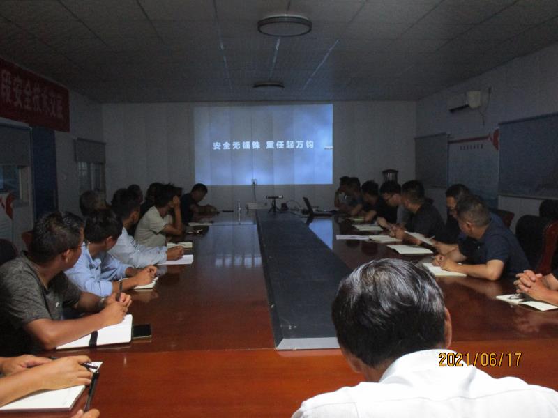 2021年6月17日19時(shí)30分,第二工程公司第二項(xiàng)目部在郯城綜合場(chǎng)站會(huì)議室組織開展了安全生產(chǎn)月活動(dòng)——觀看《生命至上,警鐘長(zhǎng)鳴》安全生產(chǎn)警示教育片,項(xiàng)目主要管理人員、施工隊(duì)伍相關(guān)人員共計(jì)30人參加了此次活動(dòng)。