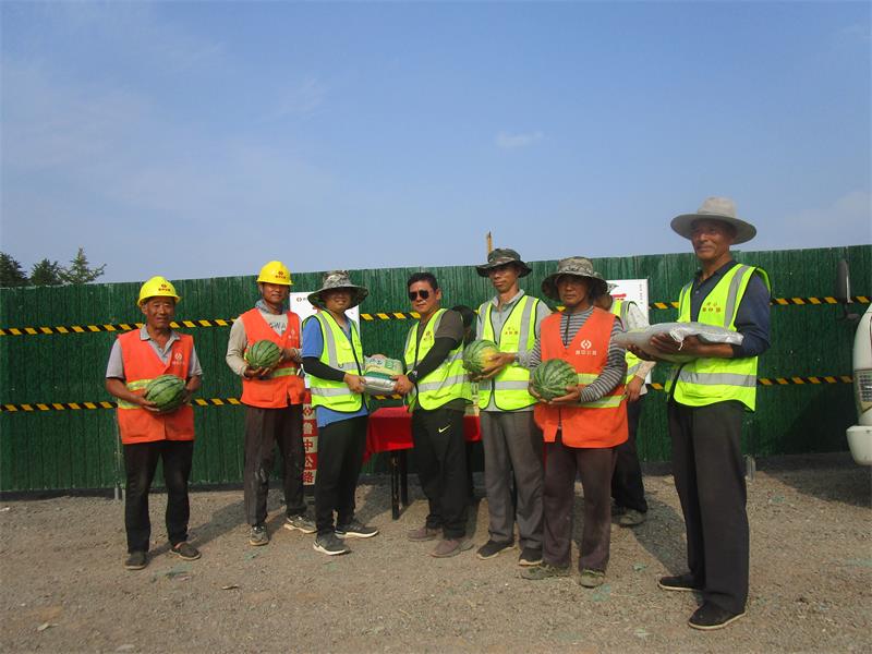 “講關(guān)懷、送清涼”小組人員從道路小樁號(hào)開始依次對(duì)路基、橋涵各分部送去藿香正氣水、郎秀礦泉水、綠豆、西瓜、工程項(xiàng)目施工人員安全指導(dǎo)手冊(cè)?;顒?dòng)過程中,小組人員與現(xiàn)場人員對(duì)工作環(huán)境、工作時(shí)間等進(jìn)行交流,橋涵一分部施工人員說道:“感謝項(xiàng)目部給一線工人送來的防暑降溫物品,送的是清涼,心里卻暖暖的”。
