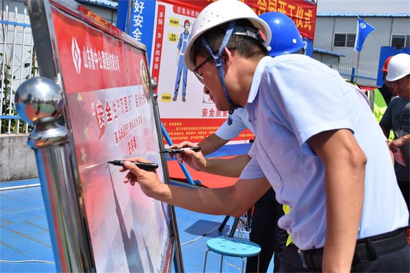 儀式開始,各隊(duì)伍整齊列隊(duì)。儀式上山東魯中公路建設(shè)有限公司第二工程公司經(jīng)理李眾作出發(fā)言:“能夠承建此項(xiàng)目,我們十分珍惜,并深感使命光榮、責(zé)任重大!我們在這里聚力啟動開工儀式暨‘安全生產(chǎn)萬里行’活動儀式,就是為了能讓所有項(xiàng)目參建人員統(tǒng)一思想,端正認(rèn)識,明確標(biāo)準(zhǔn),夯實(shí)責(zé)任,以飽滿的激情投入施工生產(chǎn),以鐵腕的內(nèi)控落實(shí)一崗雙責(zé),切實(shí)做到安全投入到位、教育培訓(xùn)到位、基礎(chǔ)管理到位、應(yīng)急救援到位,讓各級領(lǐng)導(dǎo)單位滿意,讓居民出行滿意!”