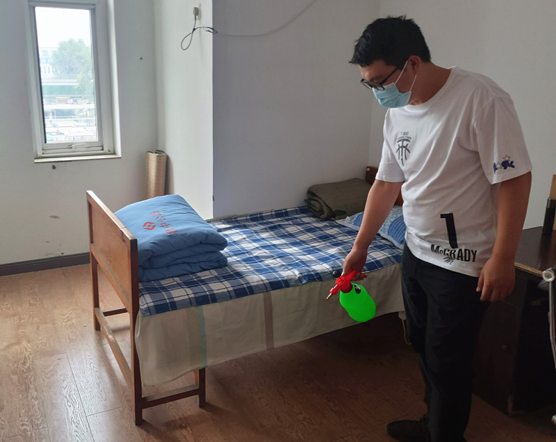 一公司對辦公區(qū)、宿舍區(qū)進行防疫消毒
