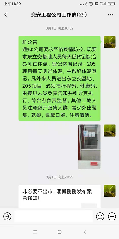 目前,公司已建立起完備的疫情防控管理機制,信息掌握及時有效,各項工作有序推進,保疫情防控措施落實,保職工隊伍穩(wěn)定,保各項施工任務(wù)平穩(wěn)運行已形成風氣。面對疫情,在加強自身防范、遵守防疫要求的同時,我們必須同舟共濟、科學防治、精準施策,才能打好打贏防治攻堅這場仗。