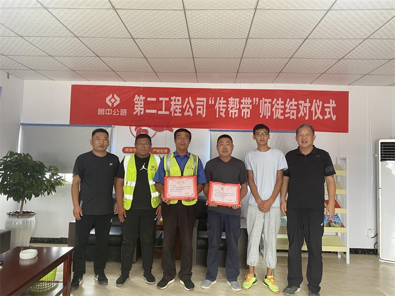 2021年9月9日,在此教師節(jié)來臨之際,山東魯中公路建設(shè)有限公司第二工程公司在郯城G205項(xiàng)目黨建室舉行了第二工程公司“傳幫帶”師徒結(jié)對儀式?;顒?dòng)旨在幫助新員工能夠快速融入集體、增強(qiáng)本領(lǐng),通過“傳、幫、帶”的形式盡快提升新員工自身工作能力,錘煉一支能打、能戰(zhàn)、能抗的工程建設(shè)隊(duì)伍。