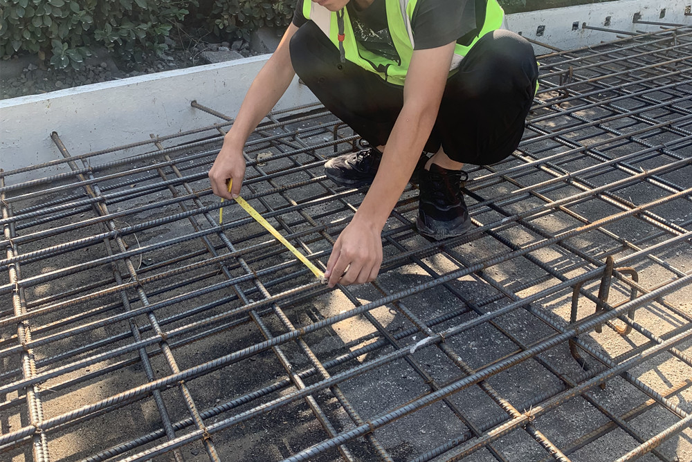 精準(zhǔn)施策,破解現(xiàn)場施工難。世上沒有兩片相同的樹葉。對(duì)于G205混凝土路段而言,則沒有兩根相同的鋼筋,沒有兩片相同的模板。由于地勢(shì)形勢(shì),本路段全線曲折多變,這要求每一根鋼筋、每一塊模板、每一道刻紋必須精準(zhǔn)。從鋼筋綁扎開始,項(xiàng)目部人員便根據(jù)現(xiàn)場測得的實(shí)際坐標(biāo)一塊板一塊板布設(shè)點(diǎn)位,電腦制圖,測算每一根鋼筋、每一塊模板的實(shí)際長寬等指標(biāo)??碳y時(shí),先行模擬出刻紋方案方能進(jìn)行實(shí)際操作。