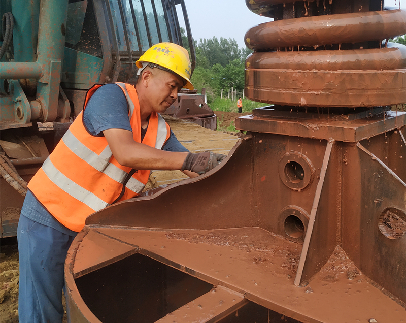 在晴空萬里中,在烈日炎炎下,在陰雨綿綿里,在皓月當(dāng)空時(shí),魯中公路橋涵施工現(xiàn)場始終矗立著一支“頂天立地”的隊(duì)伍——交安工程公司旋挖鉆施工隊(duì)。作為橋梁樁基施工的重型機(jī)械,旋挖鉆機(jī)組對橋梁質(zhì)量和整體施工進(jìn)度起著重要作用。舒展最高達(dá)28米,寬5.2米,重量18噸,最大鉆孔直徑2.5米,最大鉆孔深度96米,要駕馭這個(gè)龐然大物也非易事。從鉆孔開始,需要根據(jù)地質(zhì)情況及時(shí)調(diào)整更換鉆頭;鉆齒磨損需及時(shí)提鉆更換,遇到特殊地質(zhì)鉆齒更換更為頻繁。所有都是鐵家伙,全靠人工肩扛手抬和一臺(tái)裝載機(jī)來操作。灌樁一旦開始必須一氣呵成不容停頓,無論白天黑夜,干到幾點(diǎn)算幾點(diǎn)。現(xiàn)場人員體力、精力消耗較大。