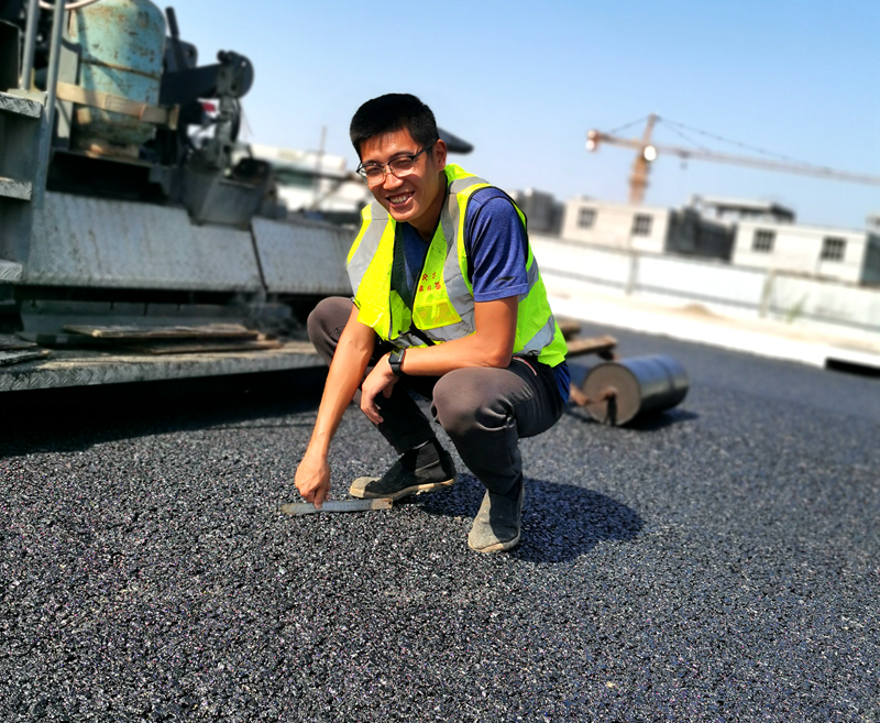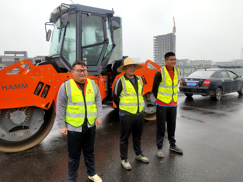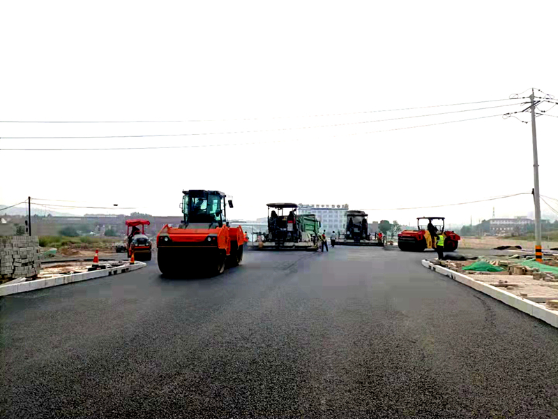 第三工程公司第二項(xiàng)目與施工公司節(jié)日堅(jiān)守施工一線,在博山沿河路路基完成段展開瀝青下面層施工。