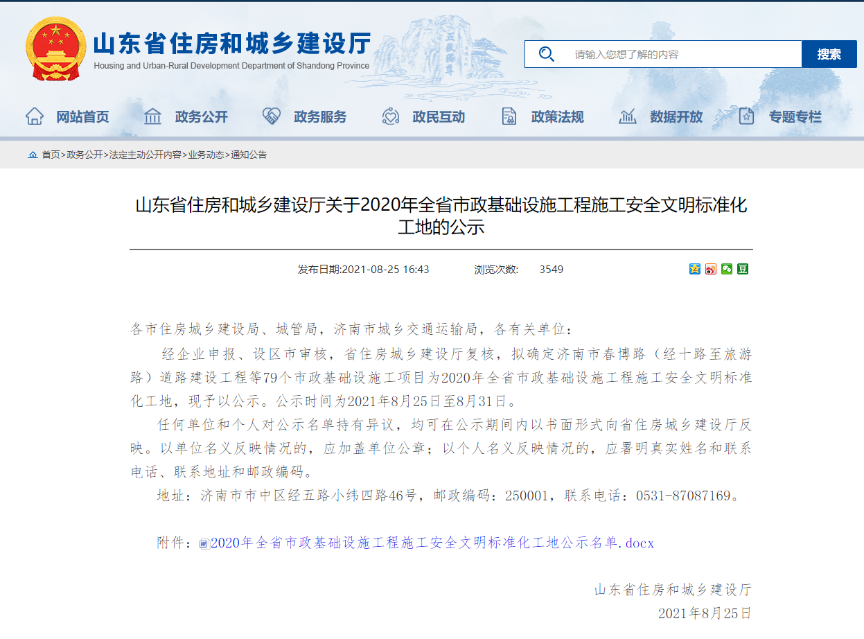 【抓作風(fēng) 創(chuàng)效益】公司聯(lián)通路項目喜獲山東省市政工程 安全文明標(biāo)準(zhǔn)化工地榮譽稱號