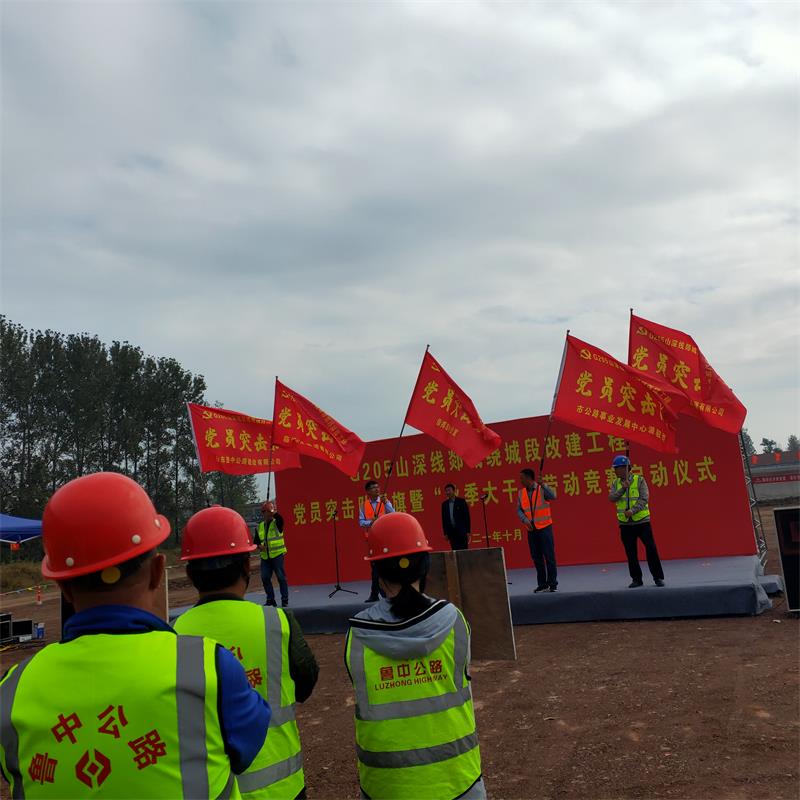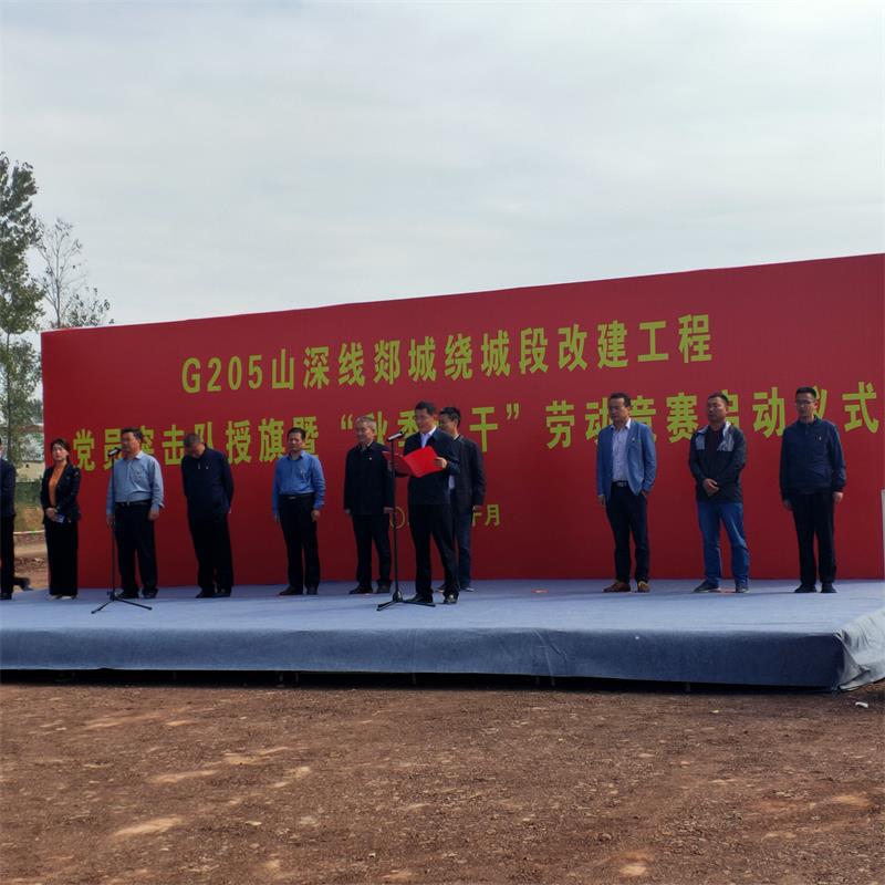 10月14日上午10:30,G205山深線郯城繞城段改建工程黨員突擊隊授旗暨“秋季大干”勞動競賽啟動儀式在施工現(xiàn)場隆重召開。出席授旗儀式的有市公路事業(yè)發(fā)展中心、郯城縣政府、縣直機關(guān)工委、郯城縣G205改建項目指揮部及沿線各標(biāo)段。