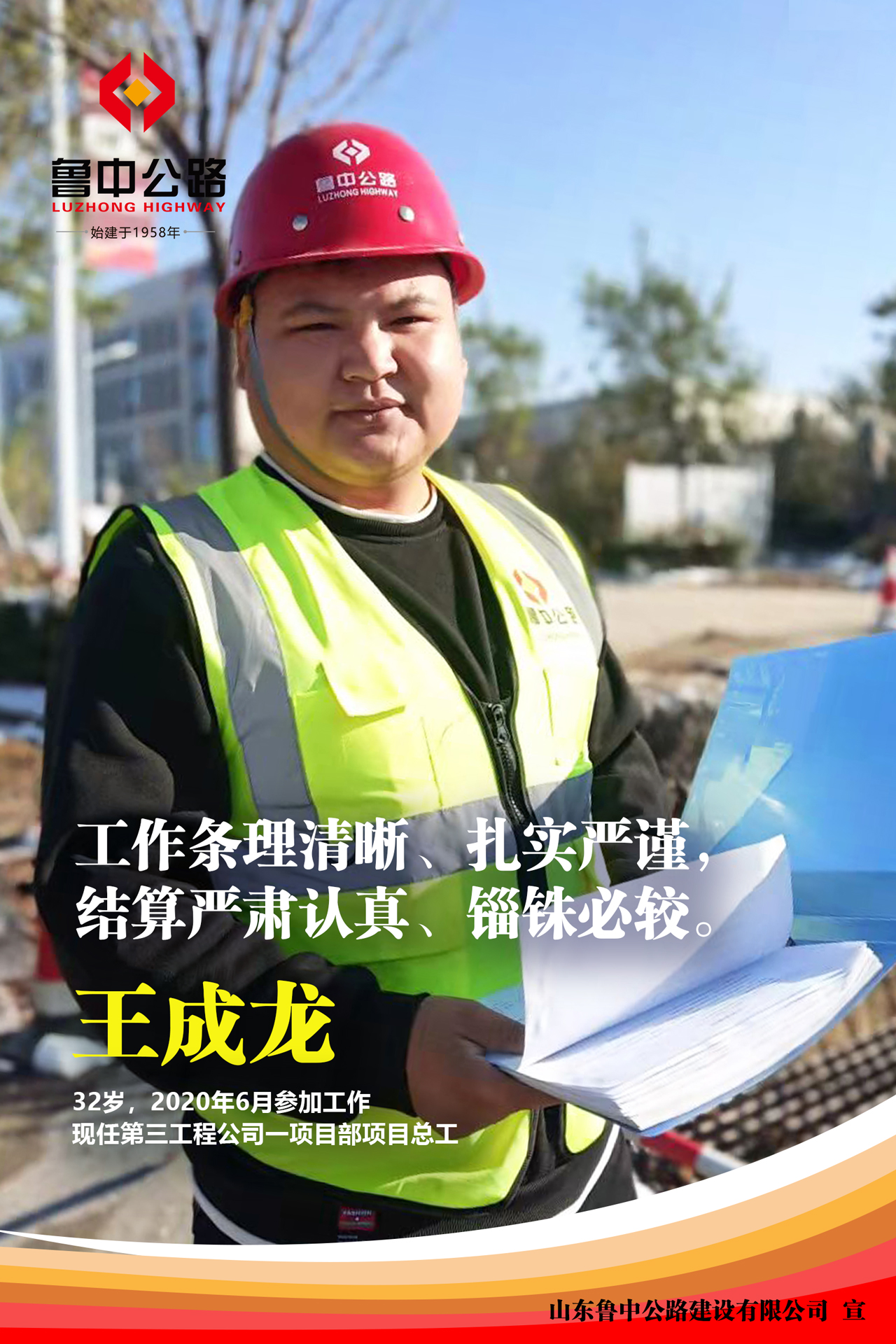 王成龍,男,1989年1月出生,2020年6月,加入了魯中公路這支建筑鐵軍,目前在第三工程公司第一項目部擔(dān)任項目總工。工作中他積極主動,作風(fēng)踏實,講求效率,勇于擔(dān)當(dāng)、愛崗敬業(yè),生活中他熱愛學(xué)習(xí),通過考取了相關(guān)專業(yè)證書來不斷開拓自己知識范疇,提升自己業(yè)務(wù)能力。