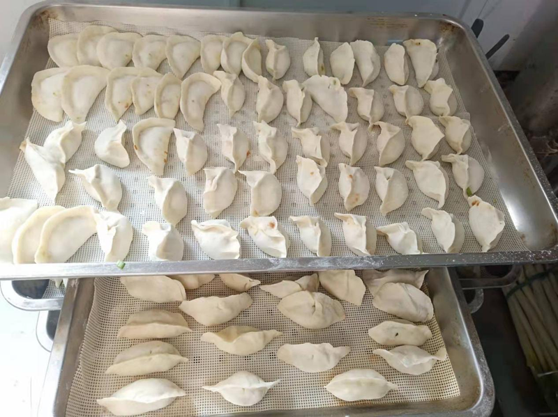 一大早,食堂的廚師和幫廚就開始忙碌起來,和面、切餡、調(diào)餡、拌餡、揉面等,待一切準(zhǔn)備工作就緒后,各部門人員大家陸陸續(xù)續(xù)來到食堂操作間準(zhǔn)備包餃子了,大家分工有序,有人負(fù)責(zé)搟面皮,有的人負(fù)責(zé)包餃子,北方的一把攥,膠東的元寶水餃,博山的石蛤蟆水餃,各式各樣的水餃花樣紛呈。在大家的歡聲笑語中各式各樣的餃子包滿了一個個托盤。灶上鍋里的水開鍋了,各式各樣的餃子魚貫入鍋,不一會兒一盤盤熱氣騰騰的餃子就出鍋了。