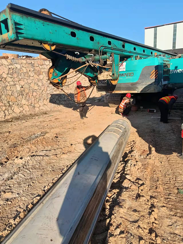 與此同時(shí),旋挖鉆機(jī)組正緊鑼密鼓的進(jìn)行設(shè)備組裝,做好開鉆前的準(zhǔn)備工作。