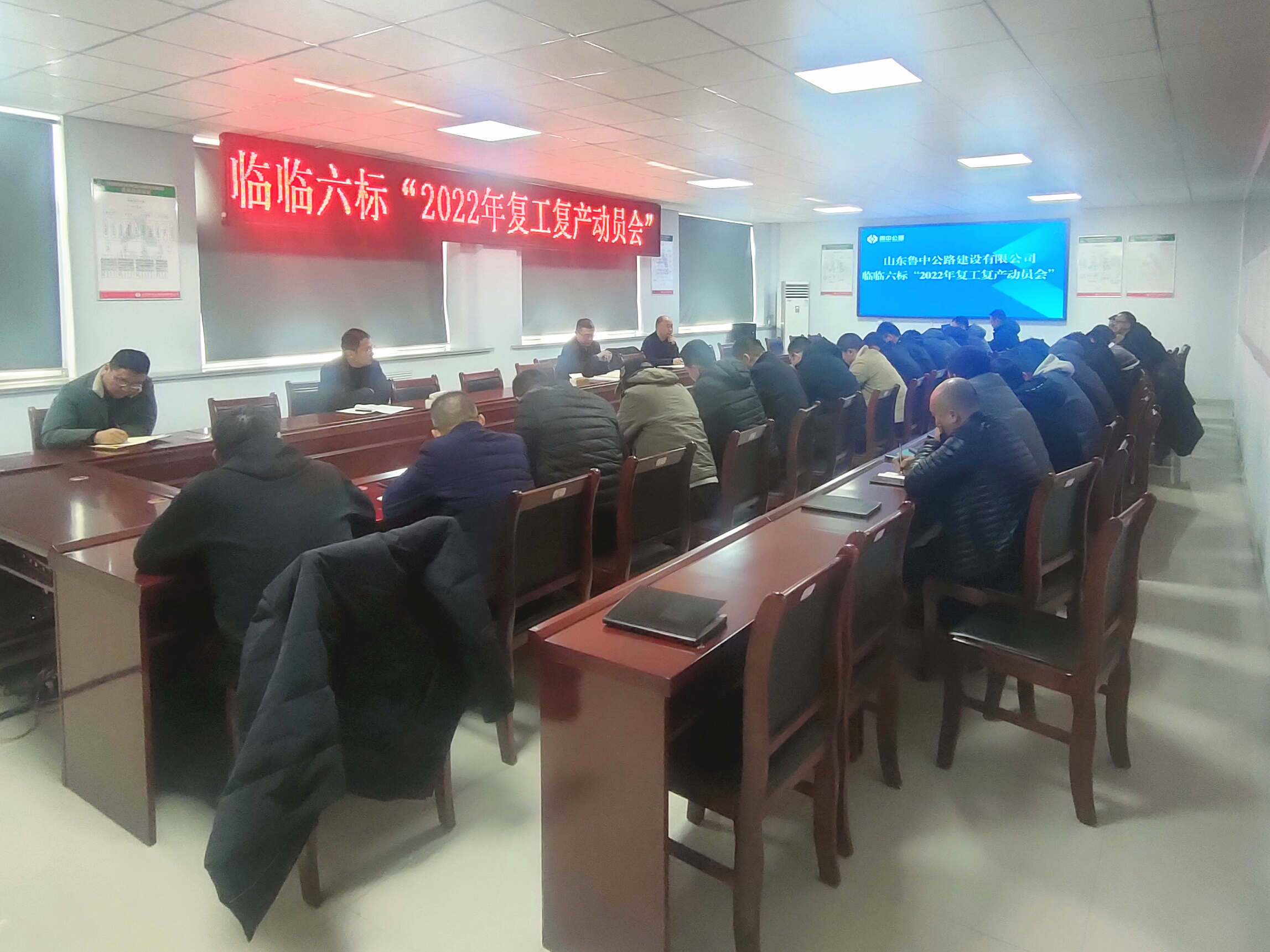 2022年2月8日13時30分,山東魯中公路有限公司臨臨六標在項目部二樓會議室召開“2022年復(fù)工復(fù)產(chǎn)動員會”。項目部領(lǐng)導(dǎo)班子、各職能部室及各工區(qū)主要管理人員共計30余人參加會議。