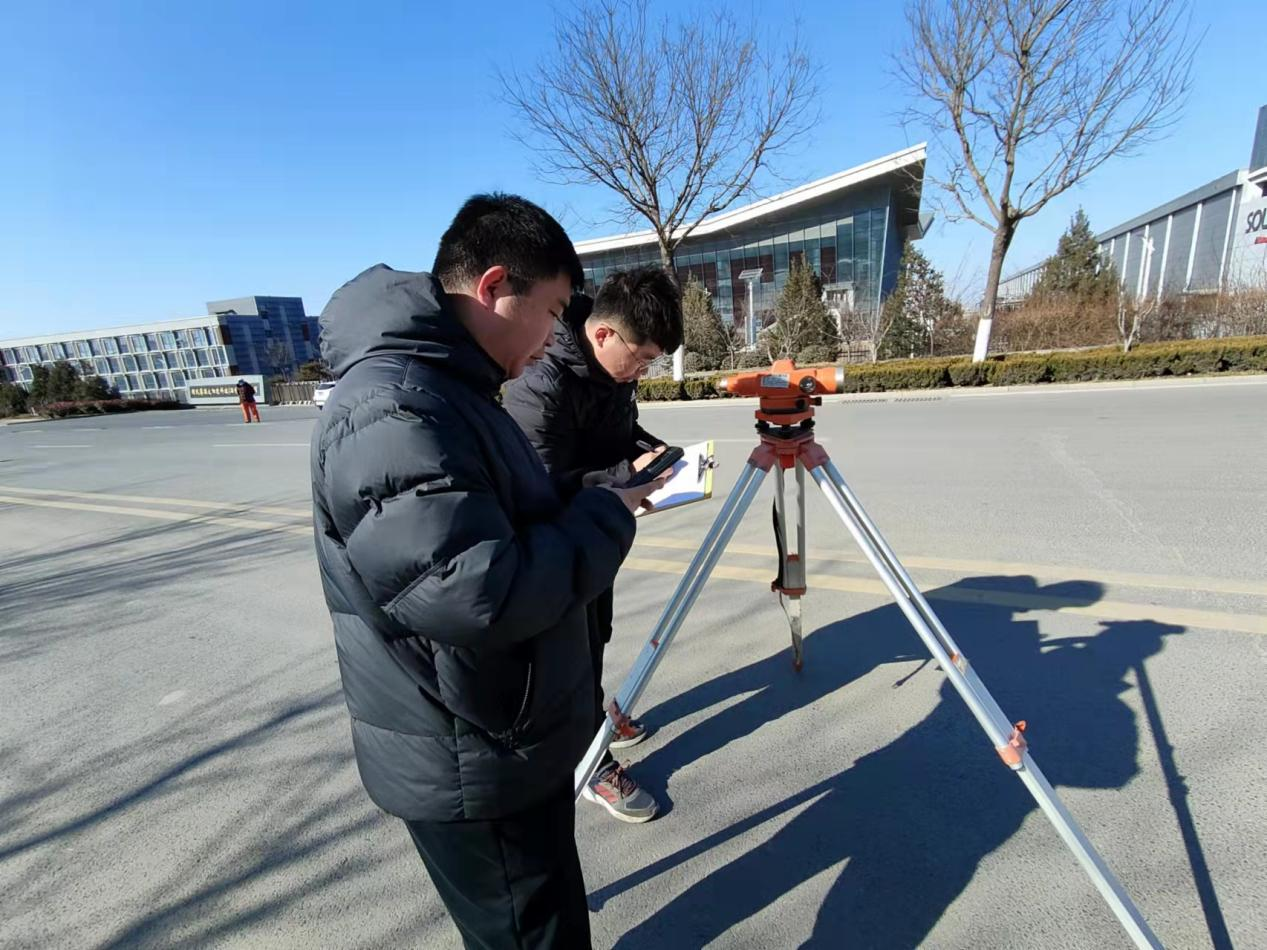 在四等水準(zhǔn)測量比賽中,雖然室外氣溫偏低,但參賽選手們依然信心滿滿、精神抖擻,各隊(duì)伍找點(diǎn)、觀測水準(zhǔn)路線,填寫標(biāo)尺讀數(shù),計(jì)算視距差等一系列操作規(guī)范合理,快而精準(zhǔn)。