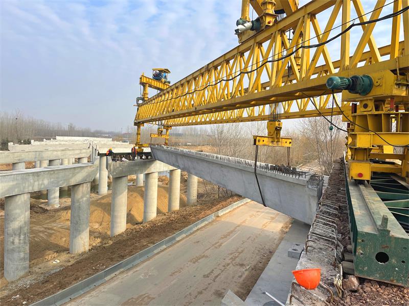 白馬河大橋全長219.5米,橋梁上部結(jié)構(gòu)采用30m裝配式預(yù)應(yīng)力混凝土連續(xù)箱梁,共七跨,一跨12片共計84片。經(jīng)過項目人員的共同努力,白馬河大橋橋梁下部結(jié)構(gòu)已于21年年底完工。復(fù)工伊始,項目部就及時協(xié)調(diào)架橋機進(jìn)場、安裝、調(diào)試,準(zhǔn)備進(jìn)行架設(shè)工作。在人力、物力、機械、計劃等方面項目部可是做足了功夫,結(jié)合施工實際情況及時與業(yè)主監(jiān)理方面對接進(jìn)行方案調(diào)整;組織好人員抓好對梁板預(yù)制、儲存、運輸?shù)拳h(huán)節(jié)的細(xì)節(jié)把控;聯(lián)系地方交通管制部門,規(guī)劃運梁路線;協(xié)調(diào)監(jiān)理及施工隊伍進(jìn)行梁板架設(shè)前的安全技術(shù)交底;安全隊伍在沿線增設(shè)警示標(biāo)志,警示過往行人及車輛?,F(xiàn)場支座安裝完成后,梁板進(jìn)入架橋機準(zhǔn)備進(jìn)行架設(shè),架設(shè)檢查合格完成后進(jìn)行臨時加固,報監(jiān)理工程師檢查,監(jiān)理工程師檢查完成后方可進(jìn)行下一片梁板的吊裝架設(shè)。整個過程緊張而有序的進(jìn)行著,項目部盡早準(zhǔn)備、精心組織、有序協(xié)作的工作方式贏得了業(yè)主及監(jiān)理單位的一致好評。