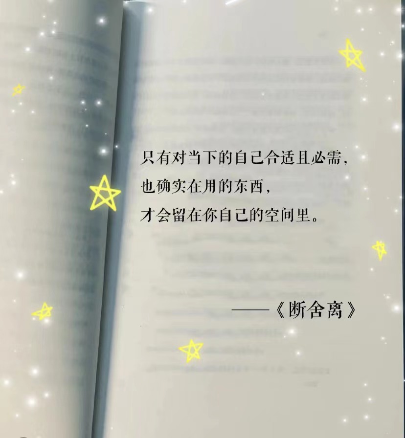 首次聽說“斷舍離”這個(gè)詞匯還是在抖音某個(gè)博主的視頻中,《斷舍離》是一本家庭生活類著作,該書主要講述了日本雜物管理咨詢師山下英子推出的概念:斷=斷絕不需要的東西、舍=舍棄多余的廢物、離=脫離對(duì)物資的執(zhí)念,讓自己處于寬敞舒適、自由自在的空間。