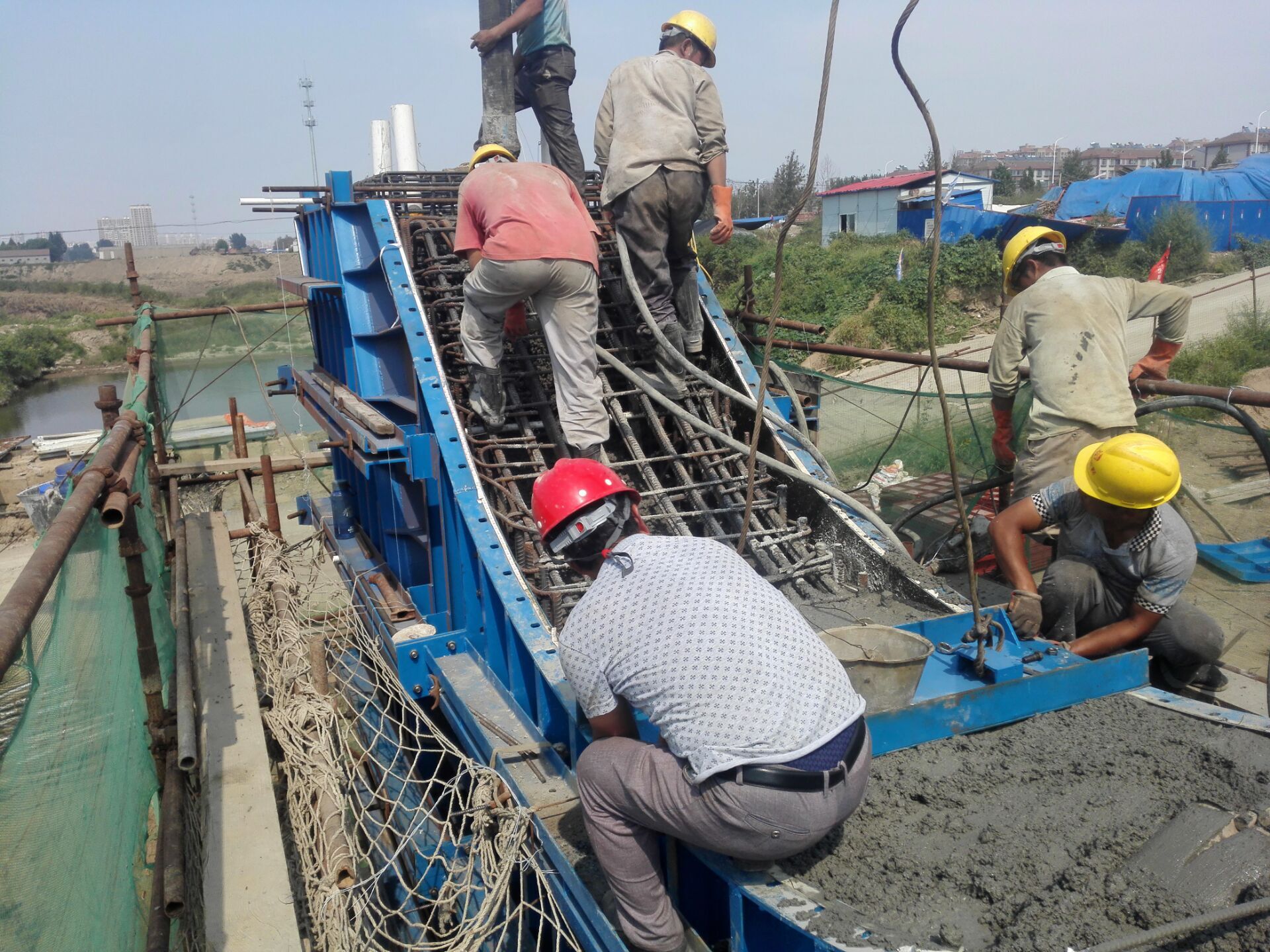 橋隧分公司馬南路孝婦河墩柱首件混凝土澆筑施工現(xiàn)場