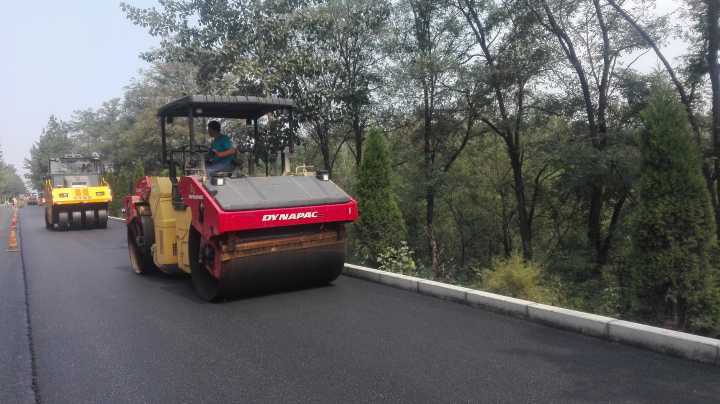 養(yǎng)護分公司九東路項目路面碾壓施工現(xiàn)場