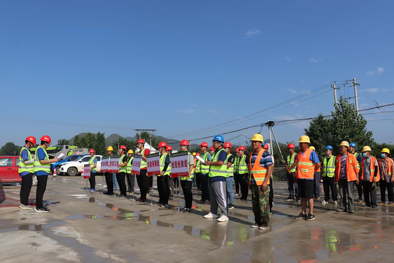 防洪防汛演練模擬了我部沂河大橋連續(xù)降雨,水位迅速暴漲,將要漫過(guò)圍堰,涌入開(kāi)挖基坑的情景。高溫中暑演練模擬了沂河大橋鋼筋工施工人員工作現(xiàn)場(chǎng)中暑暈倒的情景。發(fā)現(xiàn)“險(xiǎn)”情后,項(xiàng)目部現(xiàn)場(chǎng)管理人員立即報(bào)告給總指揮,總指揮下達(dá)救援命令。警戒保衛(wèi)組立即對(duì)現(xiàn)場(chǎng)道路進(jìn)行交通管制,后勤保障組將搶險(xiǎn)物資第一時(shí)間運(yùn)送到現(xiàn)場(chǎng),搶險(xiǎn)搶救組經(jīng)現(xiàn)場(chǎng)分析原因,立即采取針對(duì)措施開(kāi)展救援。經(jīng)過(guò)各小組搶救人員全力配合,險(xiǎn)情解除,總指揮下達(dá)各小組有序撤場(chǎng)命令。