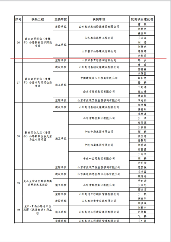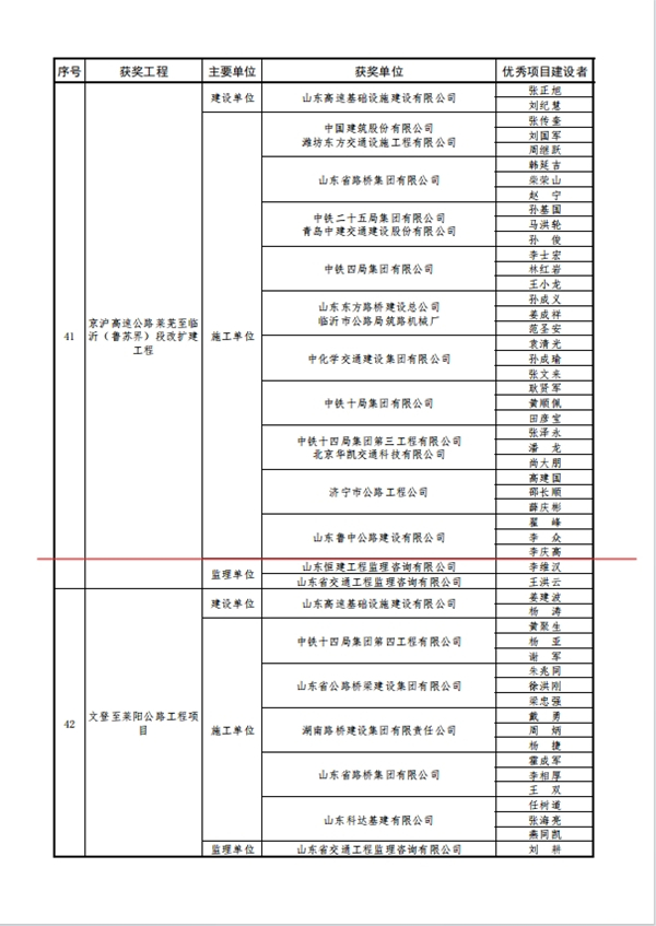 近日,中國公路建設(shè)行業(yè)協(xié)會(huì)發(fā)布2022-2023年度公路交通優(yōu)質(zhì)工程獎(jiǎng)獲獎(jiǎng)名單,公司承建的京滬高速公路萊蕪至臨沂(魯蘇界)段改擴(kuò)建工程十標(biāo)段、董家口至梁山(魯豫界)公路新泰至寧陽段項(xiàng)目二標(biāo)段喜獲此項(xiàng)殊榮。