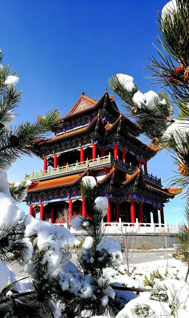 集寧晴空下的飛檐畫棟