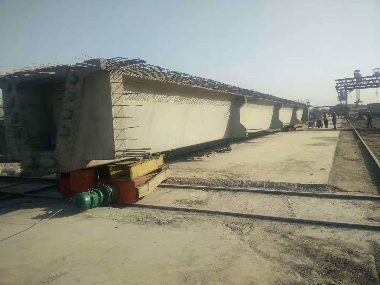 我部張店梁場(chǎng)預(yù)制任務(wù)主要包含:箱梁250片,先張空心板165片,白尼河后張空心板224片,小蓋板1051片。由于預(yù)制任務(wù)量大,存梁、移梁問題一直困擾在我們的心頭。但在不斷摸索中,我們逐漸找到了解決問題的辦法——橫向移梁機(jī),它的使用揮散了近期以來困擾在我們心頭的陰霾。移梁問題得以順利解決,不但為下一步預(yù)制工作提供了工作面,也極大的鼓舞了我梁場(chǎng)全體員工對(duì)圓滿完成施工任務(wù)的信心和決心。